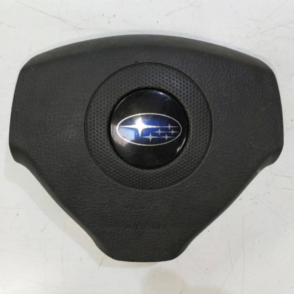 It is a driver side airbag module of Subaru Justy that goes directly into the steering wheel. It carries three parts; a pyrotechnic inflator, durable mounting frame and a padded airbag cover with the Subaru logo embossed. When there is a crash, the airbag inflates very fast cushioning the driver, and reducing injuries of the head and chest.